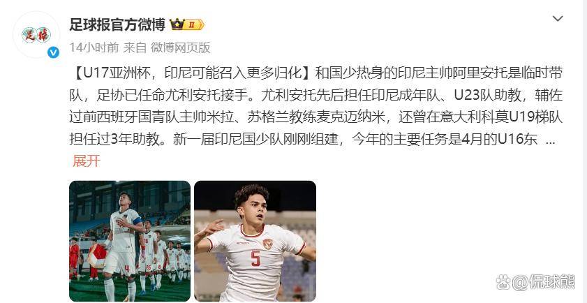 据悉,印尼足协已要求尤利安托召入两名适龄的归化球员,分别是门将拉加萨和后卫贝克。不出意外的话,他们将代表印尼队参加U17亚洲杯。