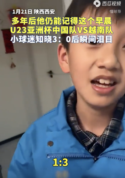 U23亚洲杯_U23亚洲杯直播_赛事直播LIVE小球迷起床后听到国足比分!瞬间喜极而泣抱着妈妈哭了!