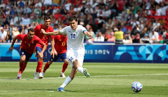 然而,乌兹别克斯坦在比赛末段阶段迅速回敬,第45+3分钟,他们通过肖穆罗多夫的点球扳平比分。半场结束时,双方暂时以1-1战平。