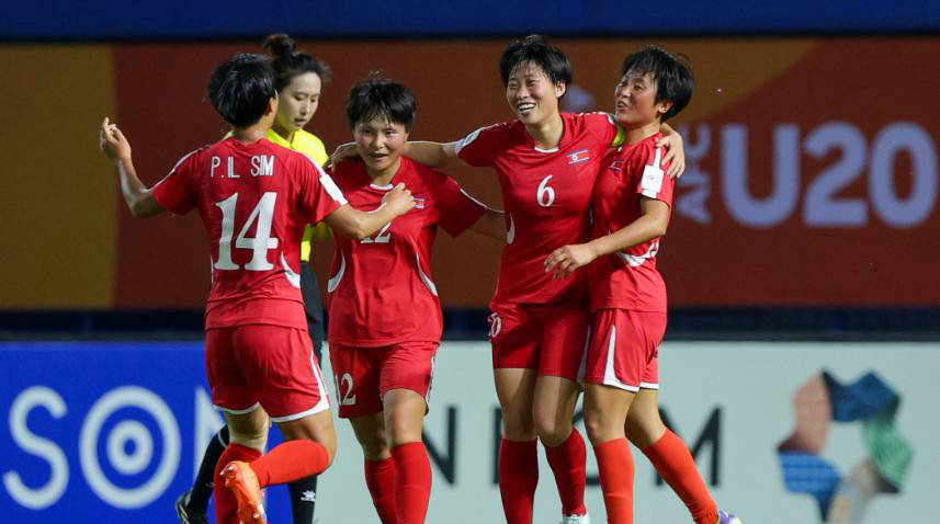 接下来,B组的最终轮次也进入高潮,朝鲜与韩国女足在小组第一的位置展开争夺。比赛伊始,朝鲜女足迅速掌控场面,第37分钟由姜柳美在禁区内进球,将比分改写为1-0。值得一提的是,朴玉一之后连续进球,帮助朝鲜女足将领先优势扩大至3-0,锁定胜局。比赛的下半场,朝鲜又进2球,以5-0彻底击溃韩国。此外,乌兹别克斯坦女足与约旦女足同样争夺小组第三,乌兹别克斯坦以4-0的成绩轻松胜出。