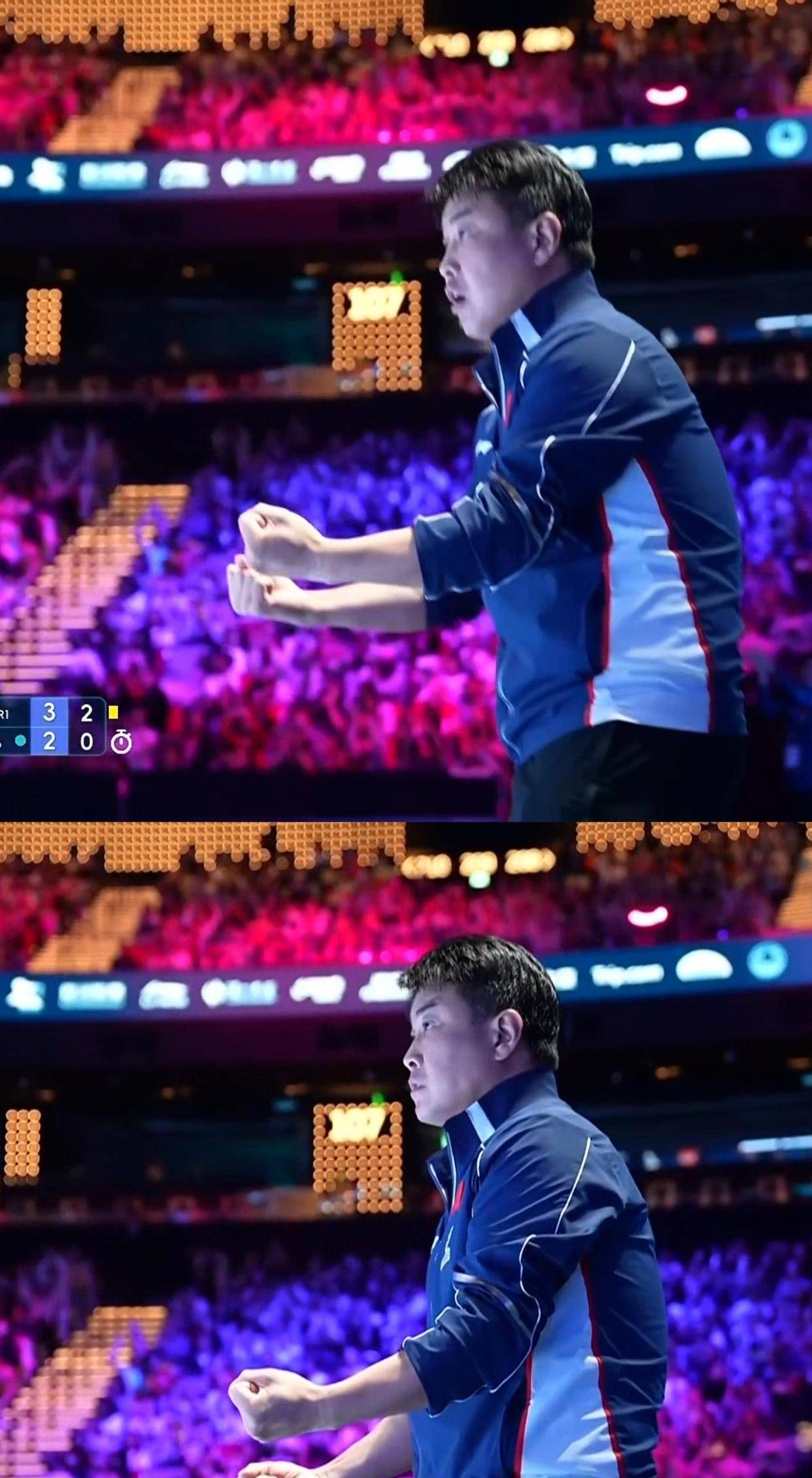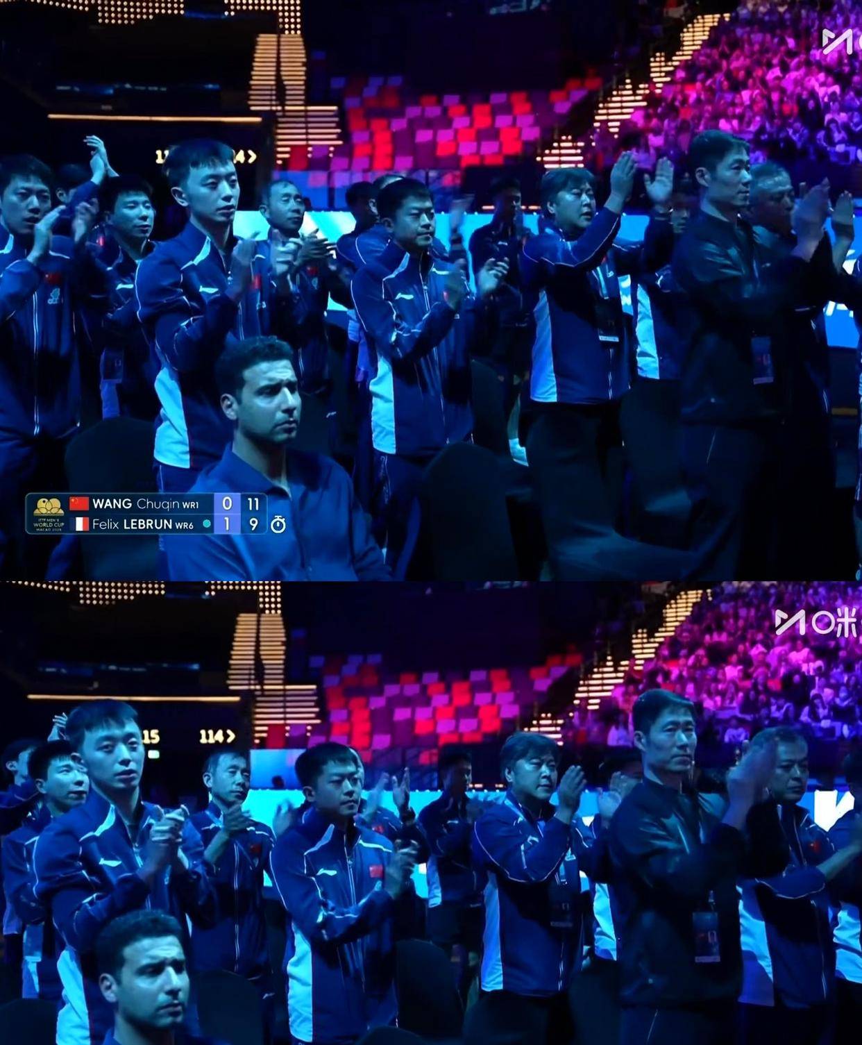 整场比赛耗时57分钟。赢下最后一分时,王楚钦张开双臂,仰头长啸。看台上,中国乒协主席王励勤、国乒总教练秦志戬、男队主教练王皓全都站了起来。王皓双手紧握成拳,闭着眼,激动得难以自持。