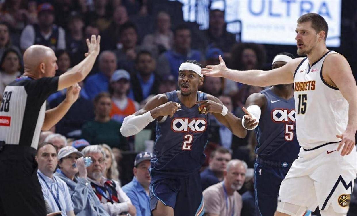 比赛从一开始就充满了对抗的火药味。因腹部拉伤缺席了9场比赛的雷霆核心谢伊·吉尔杰斯-亚历山大本场火线复出。然而复出首节,亚历山大似乎还在寻找比赛节奏,掘金队则趁势打出流畅进攻。 首节比赛,掘金全队手感滚烫,单节命中5记三分,以33比19建立了14分的领先优势。 亚历山大首节8投3中得到8分,而掘金的克里斯蒂安·布劳恩单节就砍下10分。