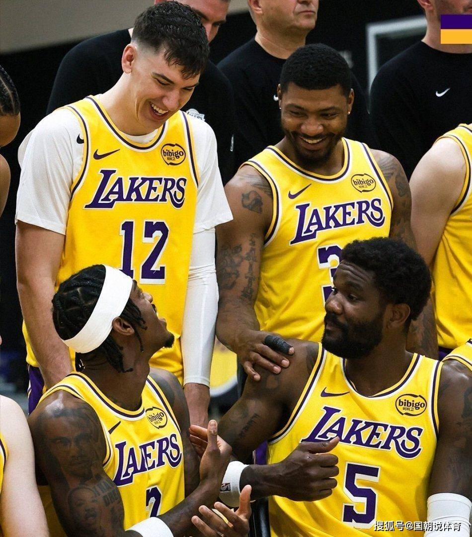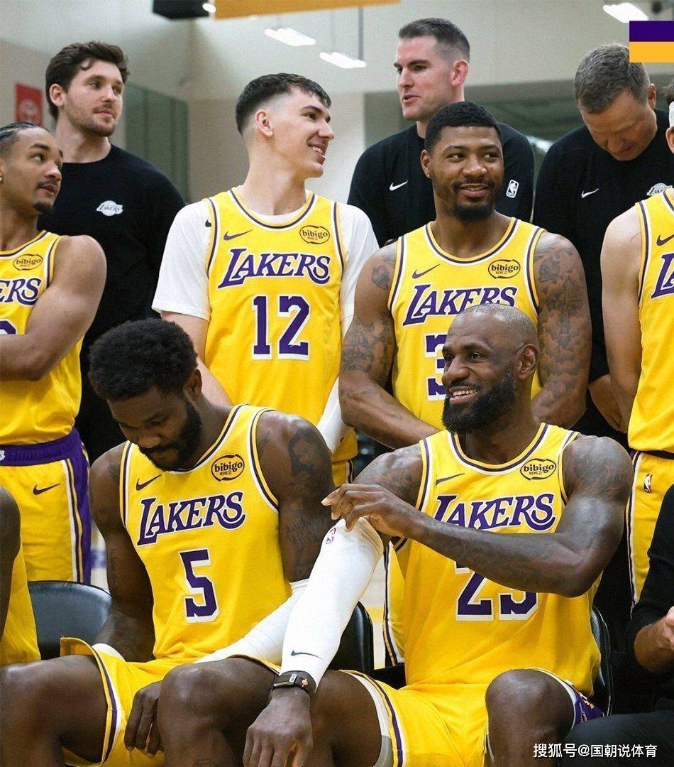 另一张照片里,贾里德·范德比尔特、德安德烈·艾顿、杰克·拉拉维亚还有马库斯·斯马特几个人凑在一块,热络地聊着天,整个人都放松得不行。 海斯还与八村垒拍摄了二人搞怪合影,八村垒瞪大双眼,喜感十足。 而球队的核心勒布朗·詹姆斯,这位41岁的老将坐在艾顿身边,整理着自己的袖套,面对熟悉的拍摄流程,他同样面露着平静而放松的微笑。 这张全家福定格下的瞬间,充满了球队的凝聚力与欢乐,仿佛所有的压力都暂时被抛在了脑后。